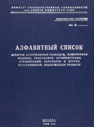 Алфавитный список агентов иностранных разведок, изменников Родины, участников антисоветских организаций, карателей и других преступников, подлежащих розыску.