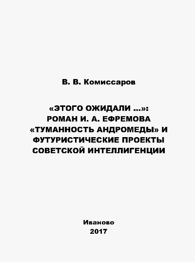 В работе доктора исторических наук, доцента кафедры общеобразовательных дисциплин Ивановской государственной сельскохозяйственной академии имени Д. К. Беляева В. В. Комиссарова анализируется значение и влияние романа И. А. Ефремова «Туманность Андромеды» на развитие научной фантастики, формирование общественно-политического дискурса советской интеллигенции, футуристические проекты отечественных интеллигентов. Книга подготовлена на широком круге источников и литературы. Издание приурочено к 60-летию первой публикации романа «Туманность Андромеды».